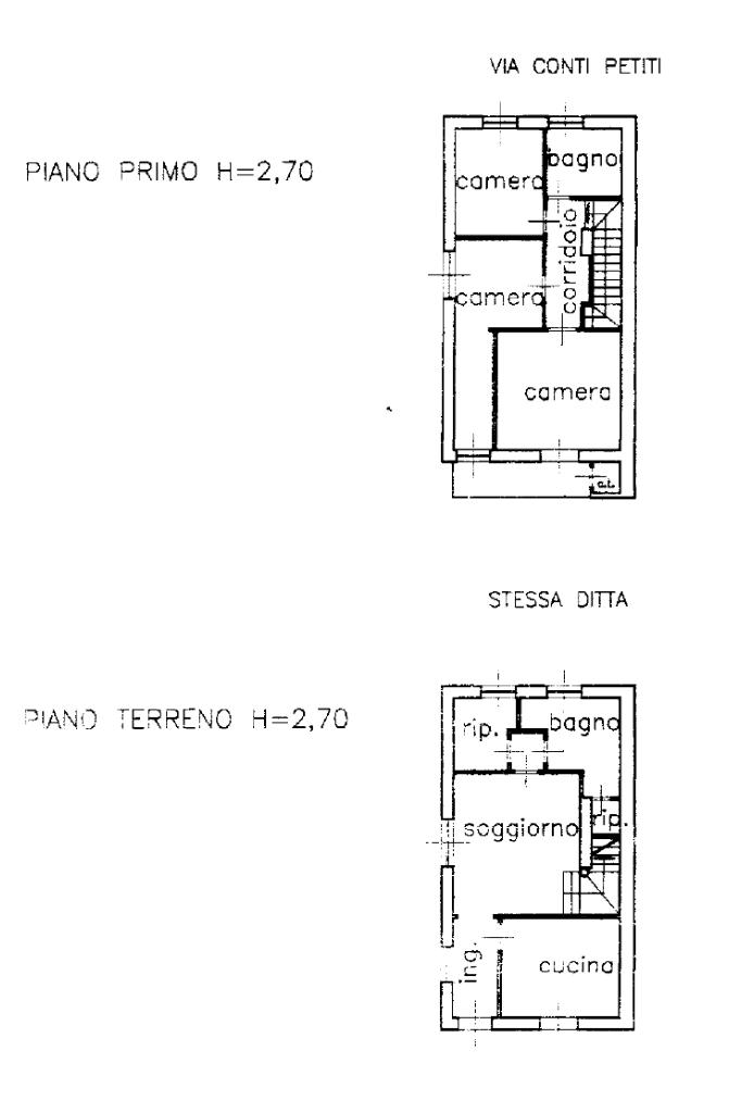 Si accede alla proprietà grazie al cancelletto pertinenziale, sul disimpegno che conduce alle varie stanze, fornite di sistema antifurto. Al piano terra troviamo il soggiorno, la cucina, il ripostiglio ed il primo servizio fornito di box doccia. Tramite scala interna si accede al livello superiore, dove si sviluppano le tre camere da letto, di cui una patronale ed il secondo servizio fornito di vasca. La casa è stata demolita e ricostruita completamente negli anni 2000, compreso il tetto che quindi non necessita nessun ingente lavoro. Il riscaldamento è autonomo a metano con radiatori ed in due delle tre camere è possibile accedere sul balcone privato.