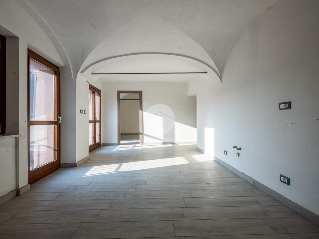 In centro paese proponiamo in vendita appartamento al primo piano di uno stabile composto da poche unità abitative. La palazzina è stata completamente ristrutturata ed è fornita di ascensore. L'ingresso avviene direttamente sul soggiorno con angolo cottura. Il disimpegno conduce alla prima camera matrimoniale, impreziosita dal bagno privato dotato di tutti i sanitari e box doccia più un antibagno utilizzabile come lavanderia. Conclude la zona notte il secondo servizio completo di tutti i sanitari e anch'esso dotato di box doccia, il ripostiglio e la seconda camera da letto, arieggiata dalle due finestre che affacciano sulla via principale. Il riscaldamento è semiautonomo a pavimento con pompe di calore. Attualmente vi è la possibilità di acquistare una o due autorimesse singole ancora disponibili e la cantina. Vengono valutate formule di riservato dominio.