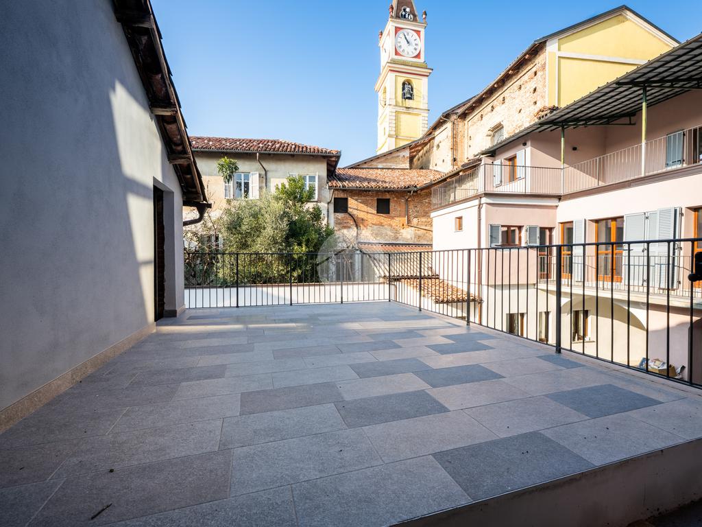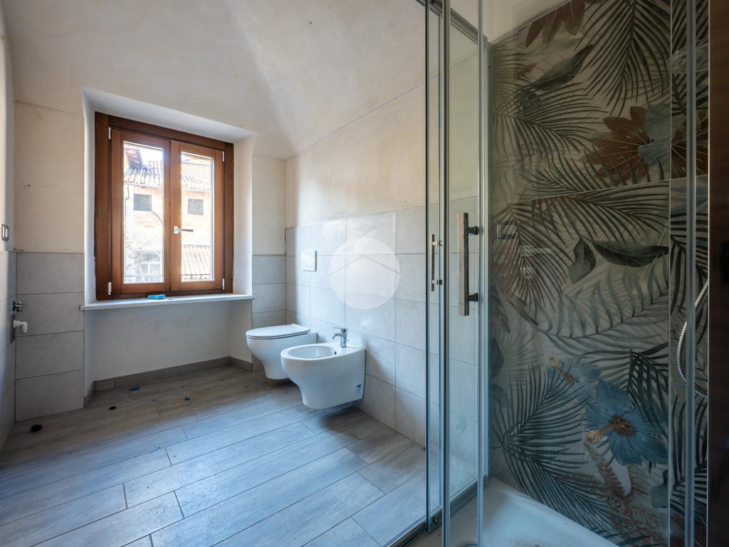 In centro paese proponiamo in vendita un appartamento al primo piano di uno stabile composto da poche unità abitative e in fase di ristrutturazione. L'ascensore conduce direttamente alla porta di ingresso che da accesso sul soggiorno con angolo cottura. Il disimpegno conduce al bagno dotato di box doccia, e alla camera matrimoniale. L'immobile è dotato di balcone privato che si collega al grande terrazzo sempre di proprietà. Il riscaldamento è a pavimento con pompe di calore. Le spese condominiali non sono state ancora conteggiate. Attualmente vi è la possibilità di acquistare una o due autorimesse singole ancora disponibili e la cantina. Vengono valutate formule di riservato dominio.
