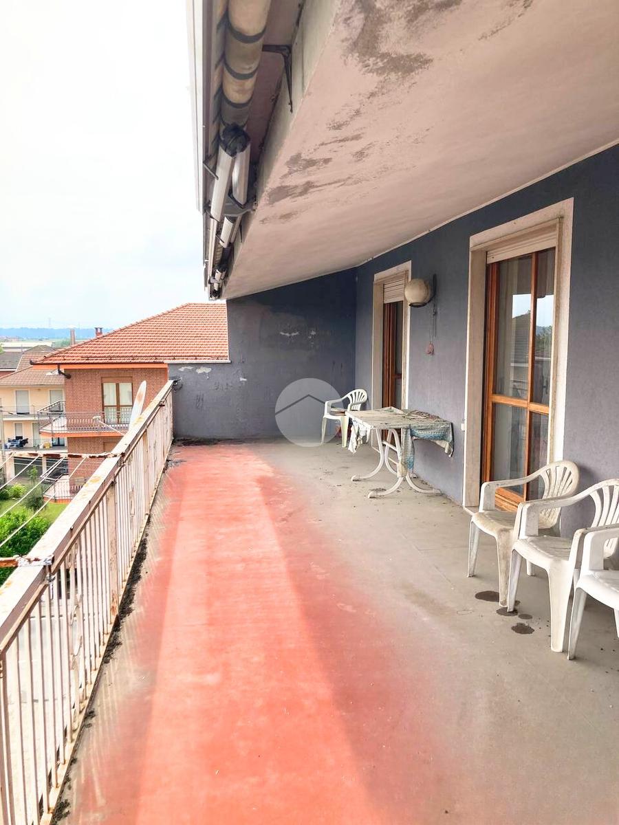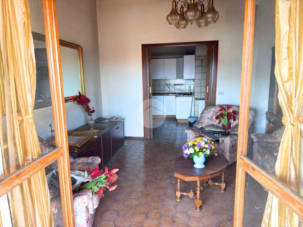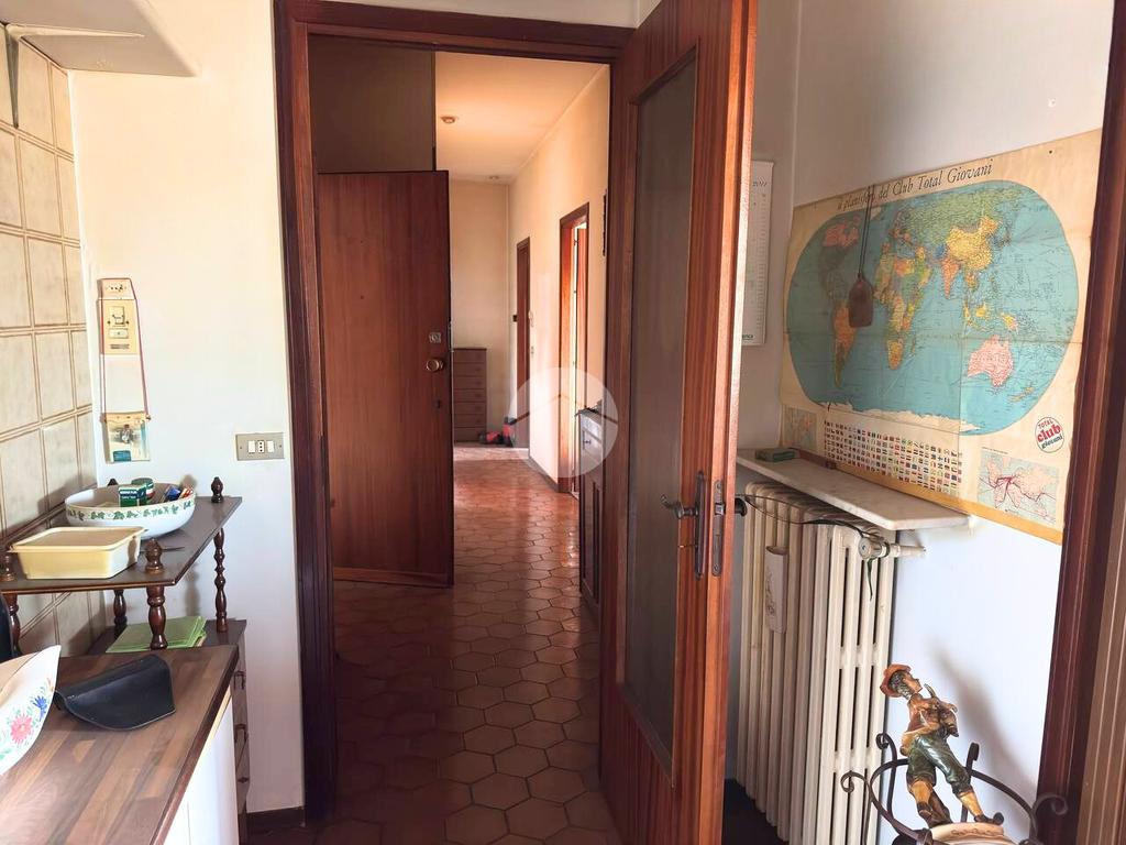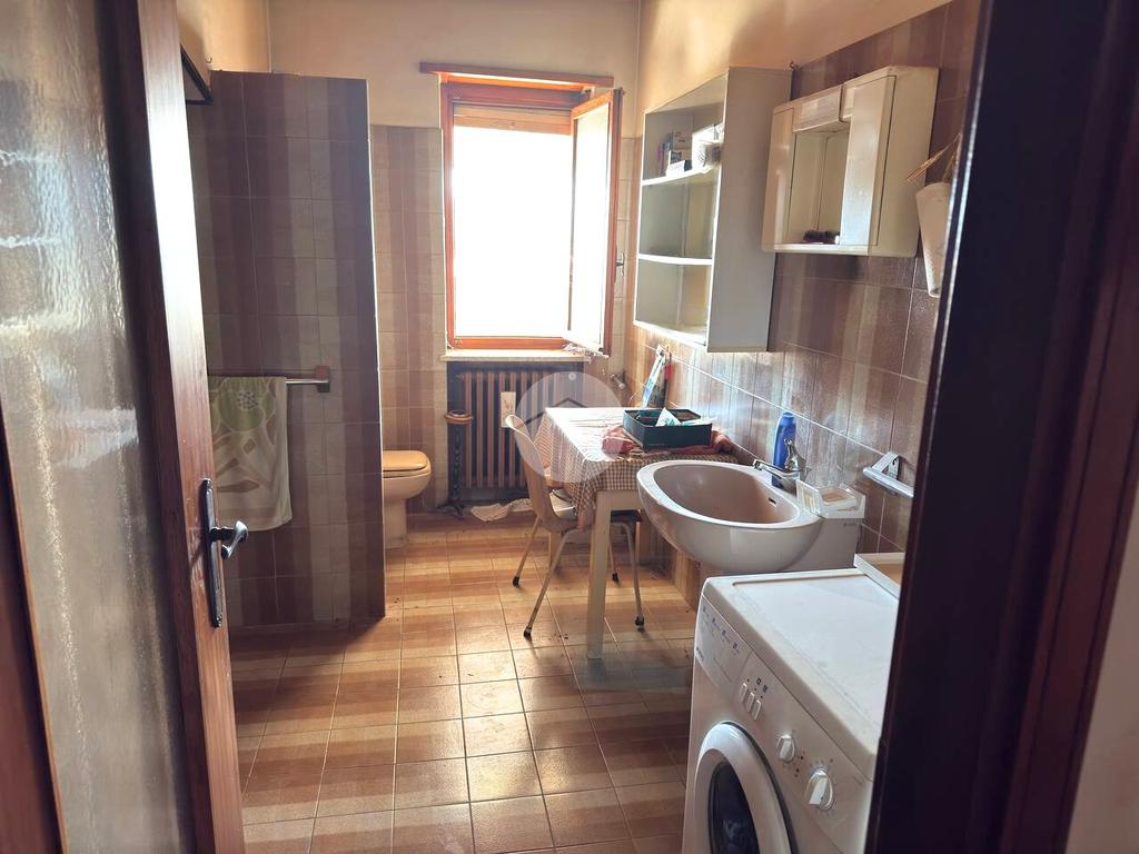 All'ultimo piano di uno stabile dotato di ascensore, sito in zona comoda ai servizi che il paese offre, proponiamo in vendita Trilocale con ampio terrazzo. L'ingresso avviene sul disimpegno che conduce alla luminosa zona giorno composta dalla cucina abitabile e dal soggiorno. Da quest'ultimo vi è la possibilità di uscire sull'ampio terrazzo. Il corridoio collega la zona giorno dalla zona notte, composta dalla camera da letto matrimoniale di generose dimensioni, con accesso sul terrazzo esclusivo. Il servizio è provvisto di vasca. Completa l'unità abitativa il ripostiglio. Il riscaldamento è di tipo centralizzato e le spese condominiali sono contenute. Completa la proprietà una cantina al piano semi interrato e l'autorimessa doppia posta al piano terra.