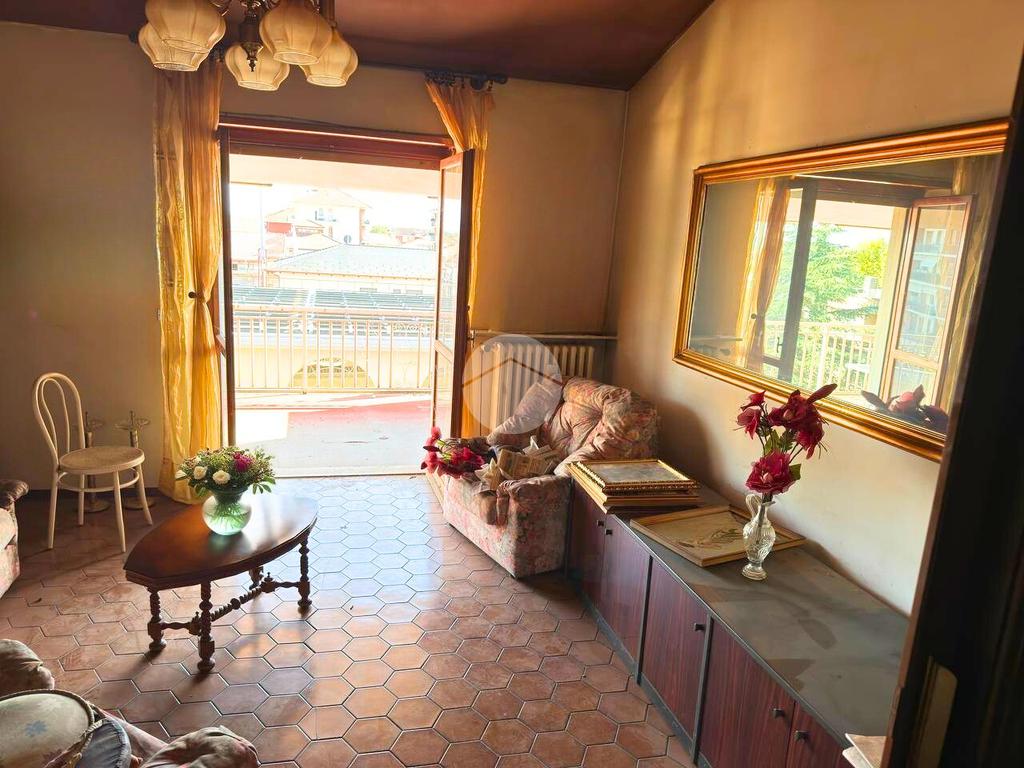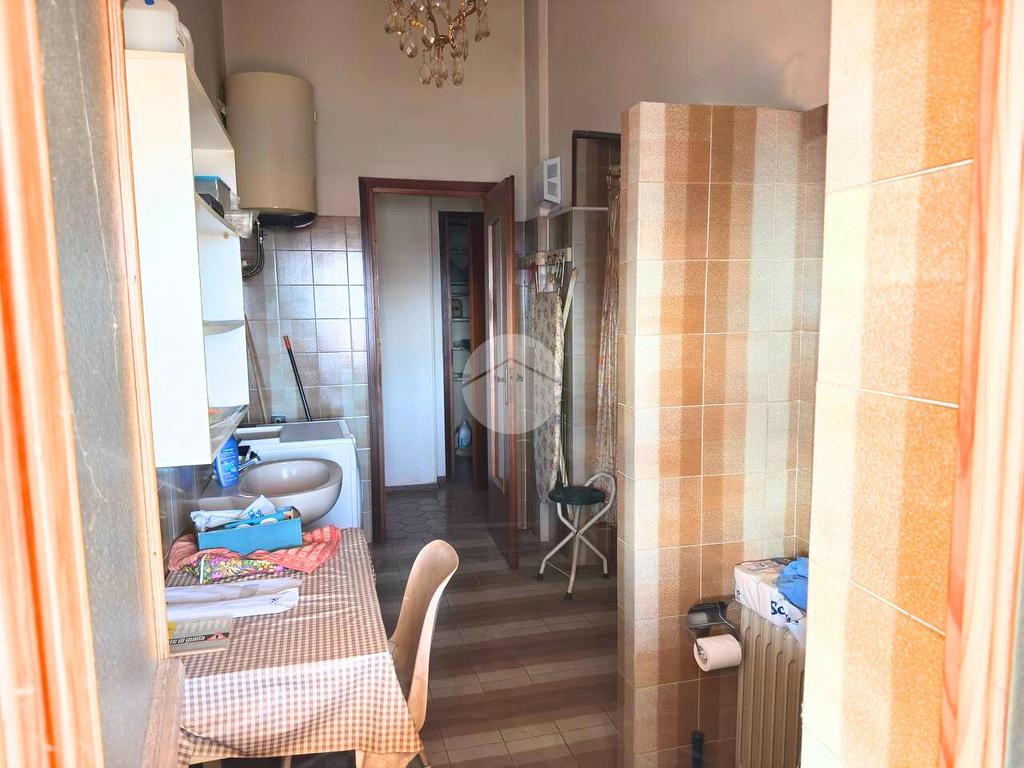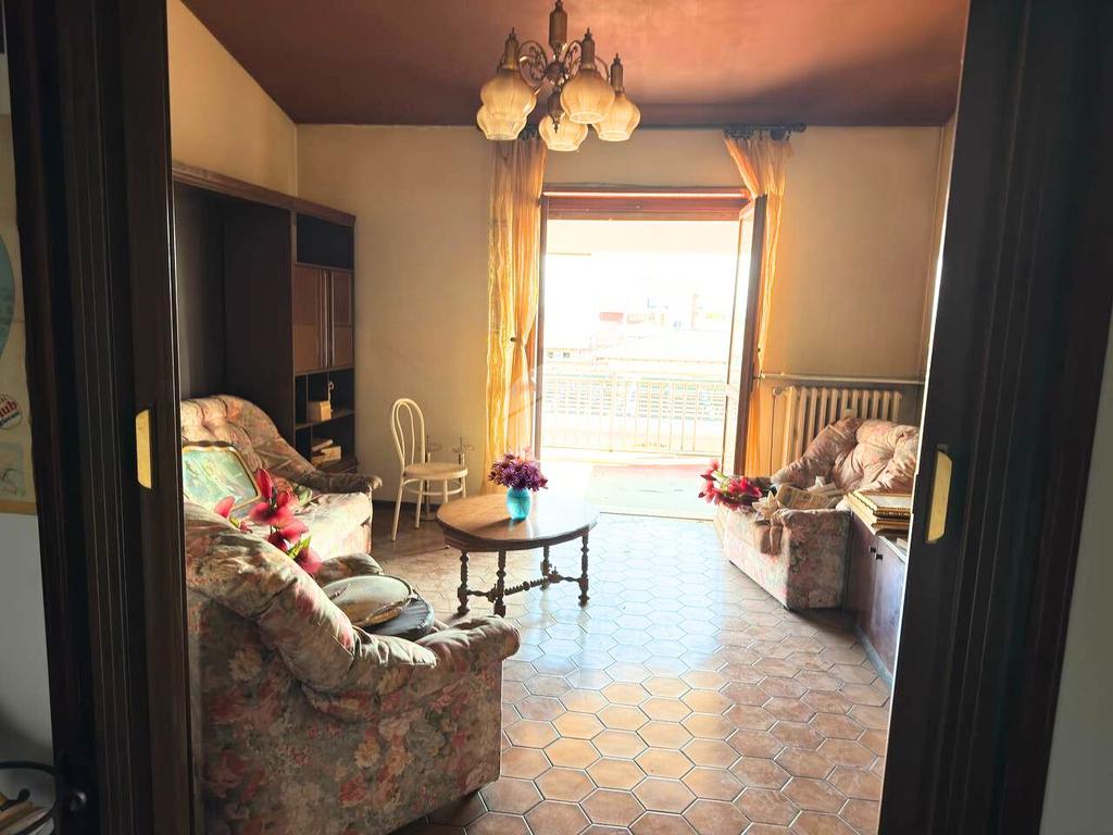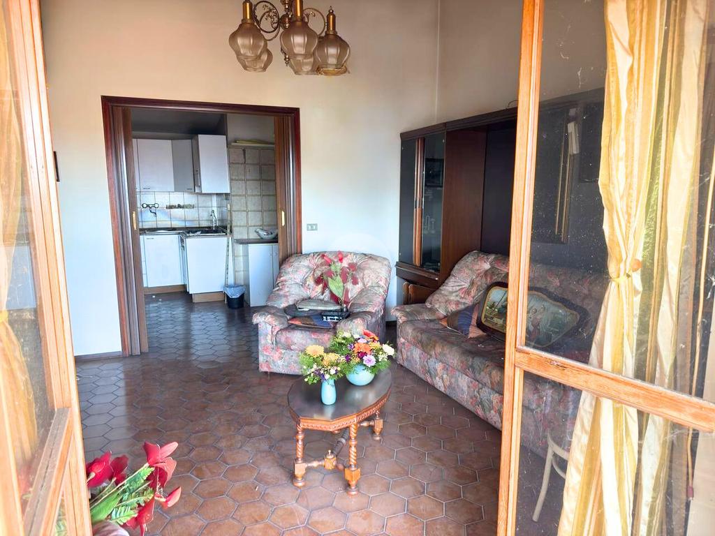 All'ultimo piano di uno stabile dotato di ascensore, sito in zona comoda ai servizi che il paese offre, proponiamo in vendita Trilocale con ampio terrazzo. L'ingresso avviene sul disimpegno che conduce alla luminosa zona giorno composta dalla cucina abitabile e dal soggiorno. Da quest'ultimo vi è la possibilità di uscire sull'ampio terrazzo. Il corridoio collega la zona giorno dalla zona notte, composta dalla camera da letto matrimoniale di generose dimensioni, con accesso sul terrazzo esclusivo. Il servizio è provvisto di vasca. Completa l'unità abitativa il ripostiglio. Il riscaldamento è di tipo centralizzato e le spese condominiali sono contenute. Completa la proprietà una cantina al piano semi interrato e l'autorimessa doppia posta al piano terra.